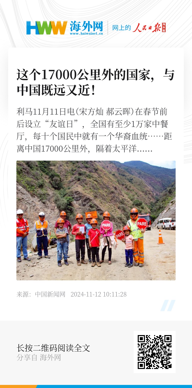 “在我所去过的国家中,秘鲁是对中国最友好的国家之一。这里离中国既远又近!”在此间接受记者采访时,秘鲁中华通惠总局主席罗杰文和多位理事,来自中国多地的侨团代表以及当地华文媒体负责人,纷纷不约而同地表示。