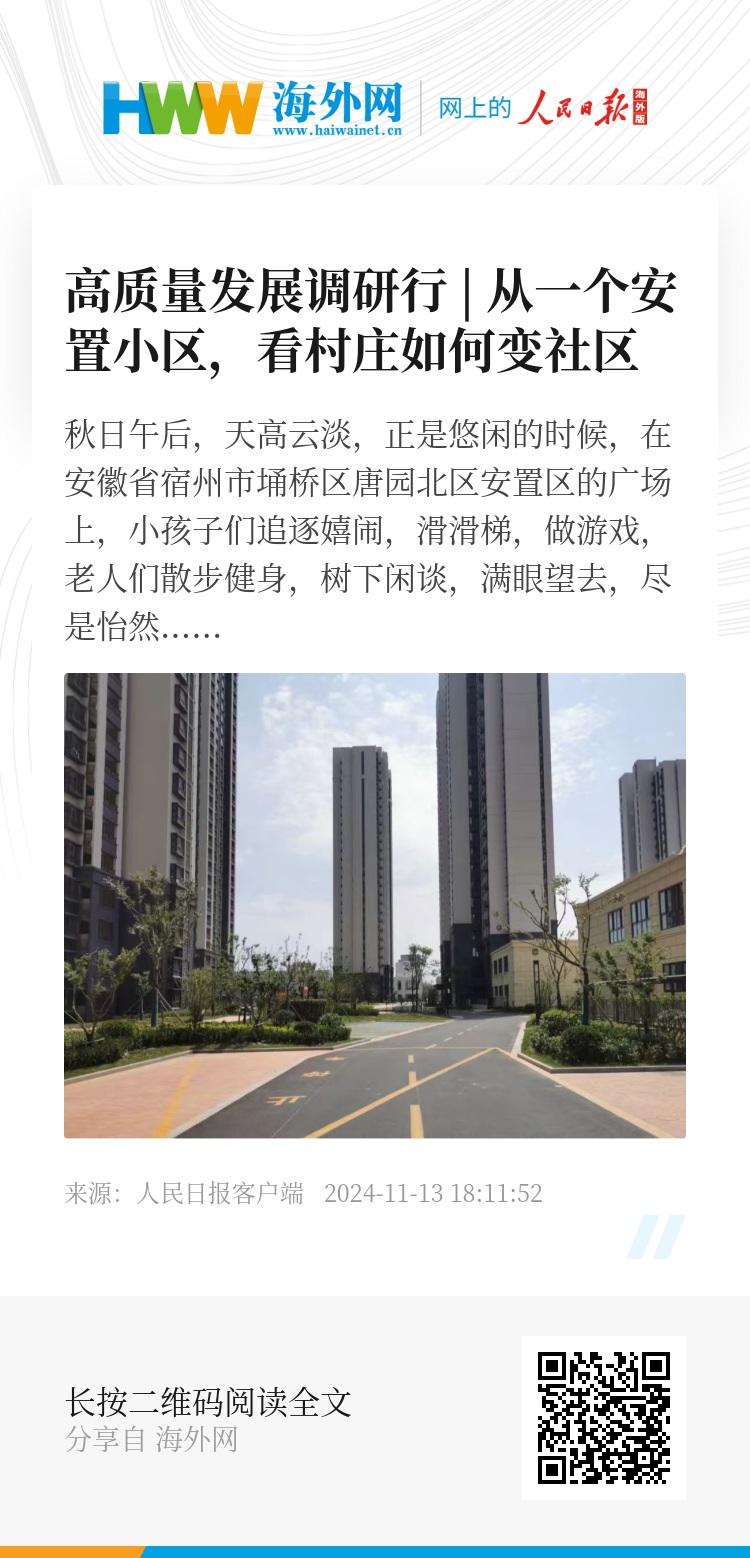 秋日午后,天高云淡,正是悠闲的时候,在安徽省宿州市埇桥区唐园北区安置区的广场上,小孩子们追逐嬉闹,滑滑梯,做游戏,老人们散步健身,树下闲谈,满眼望去,尽是怡然自乐。