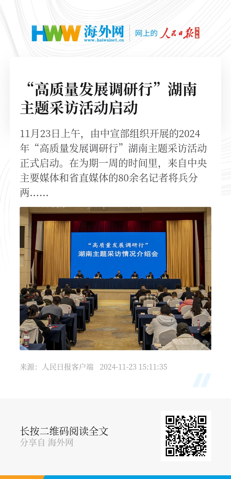 11月23日上午,由中宣部组织开展的2024年“高质量发展调研行”湖南主题采访活动正式启动。