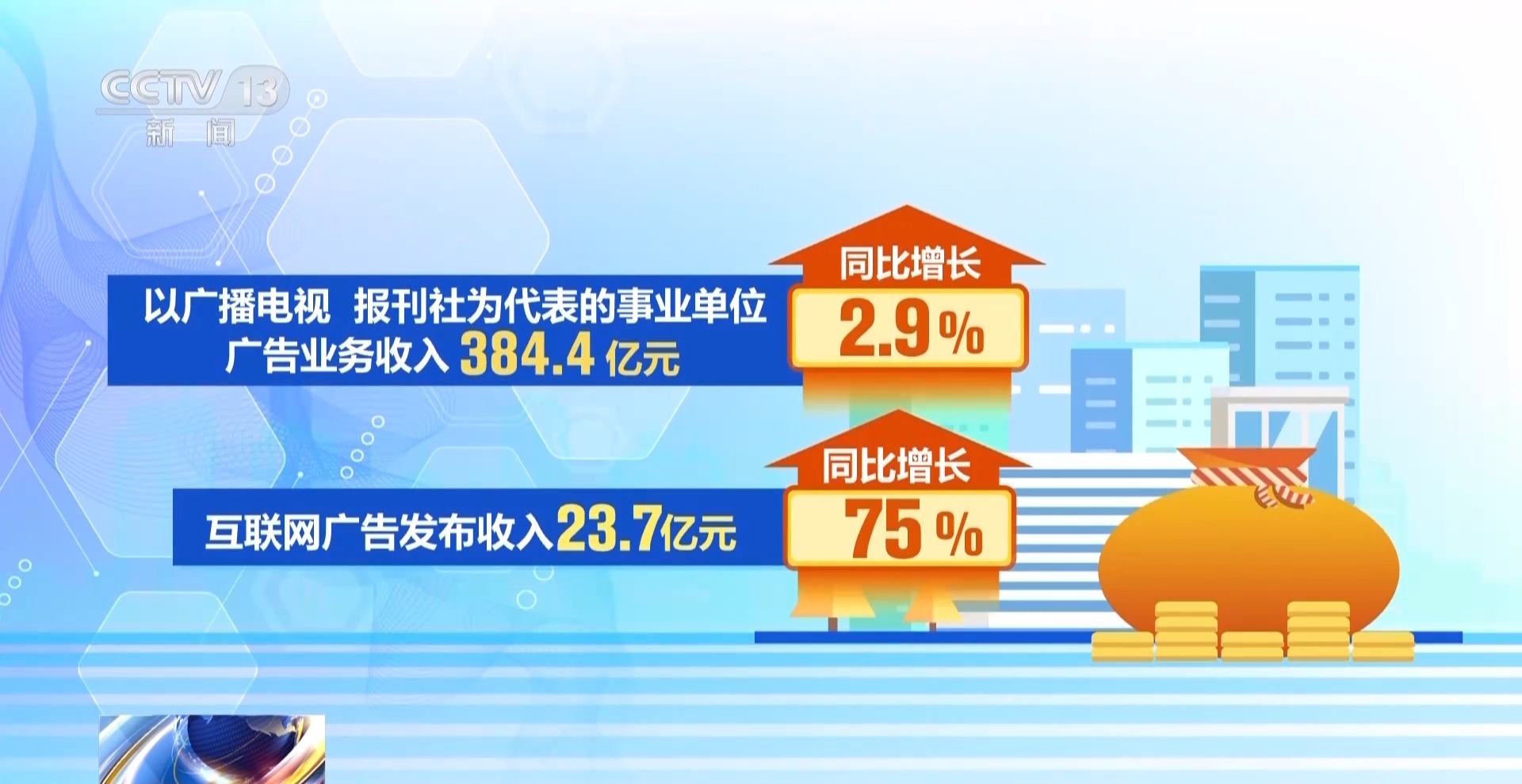 以广播电视、报刊社为代表的事业单位广告业务收入384.4亿元,同比增长2.9%,其中,互联网广告发布收入23.7亿元,同比增长75%。广告企业市场预期持续改善,发展信心明显提升。