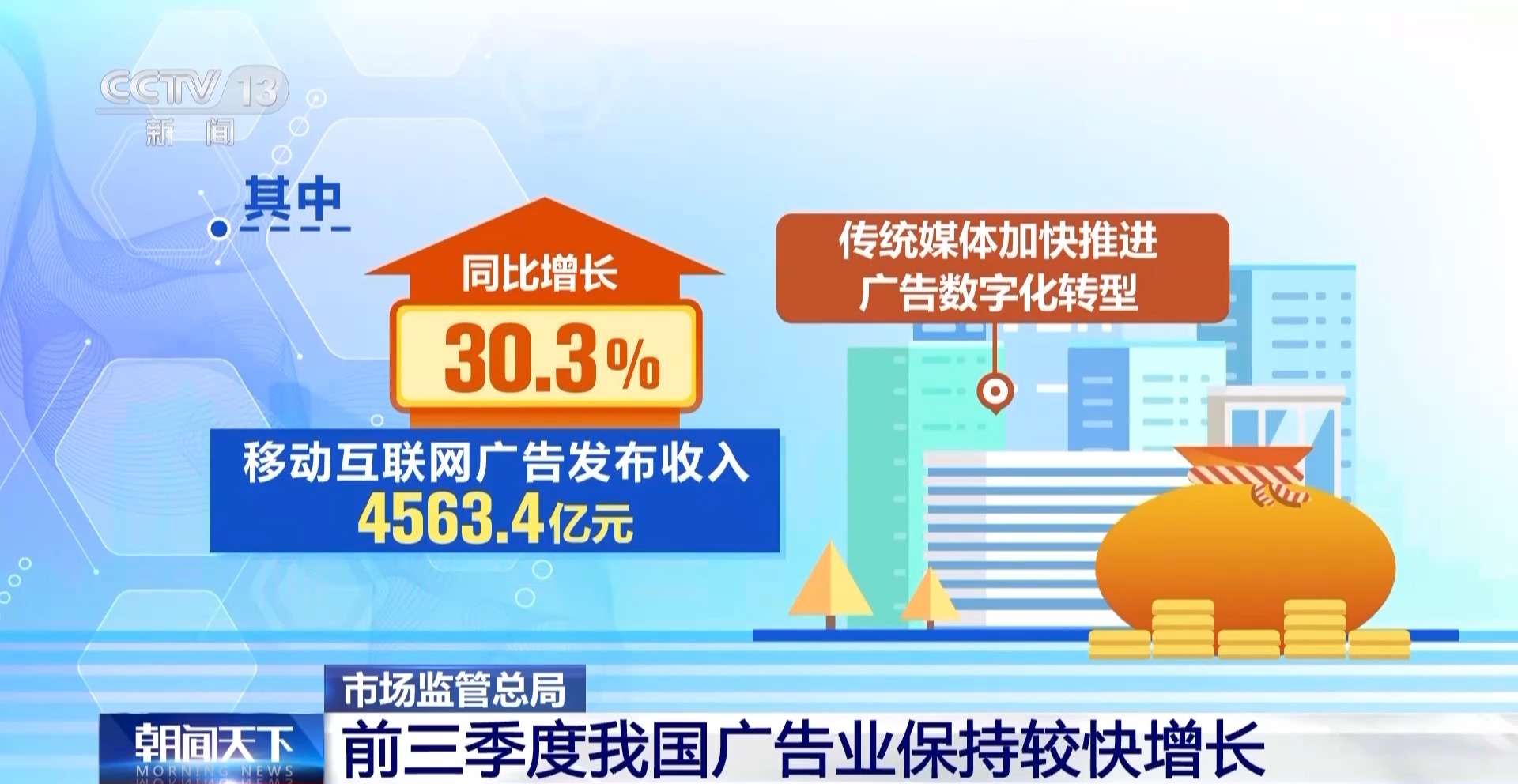 今年前三季度,我国广告业保持较快增长,头部企事业单位的互联网广告发布收入达4994.5亿元,同比增长15.4%。