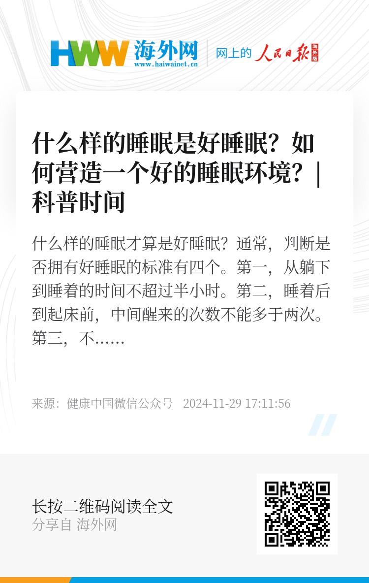 第一,从躺下到睡着的时间不超过半小时。第二,睡着后到起床前,中间醒来的次数不能多于两次。第三,不早醒。这里的早醒指的是比你平时起床的时间早半个小时以上。第四,睡醒之后,你是否感到轻松,也就是大家常说的“满血复活”。达到以上四个标准,才能在临床表现上算是一个好睡眠。