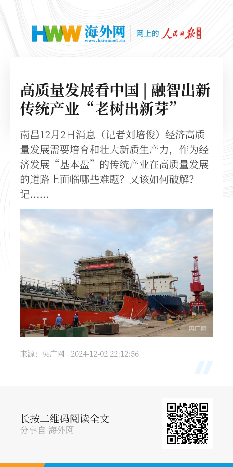 央广网南昌12月2日消息(记者刘培俊)经济高质量发展需要培育和壮大新质生产力,作为经济发展“基本盘”的传统产业在高质量发展的道路上面临哪些难题?又该如何破解?记者深入赣鄱大地,寻找解题思路。