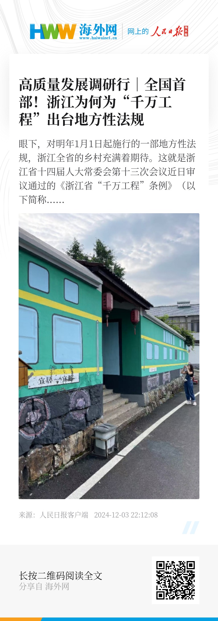 《条例》不仅是对“千万工程”成功经验的制度化总结,更是为建设宜居宜业和美乡村、推动乡村全面振兴,提供了坚实的法制保障。