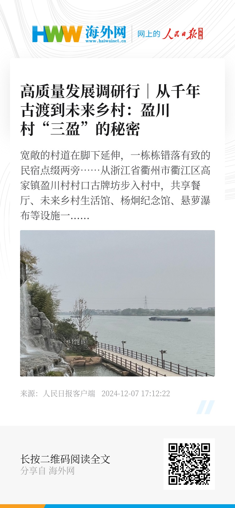 截至目前,盈川村今年累计接待游客超过50万人次。村集体经营性收入已从2022年15万元增长至120余万元。