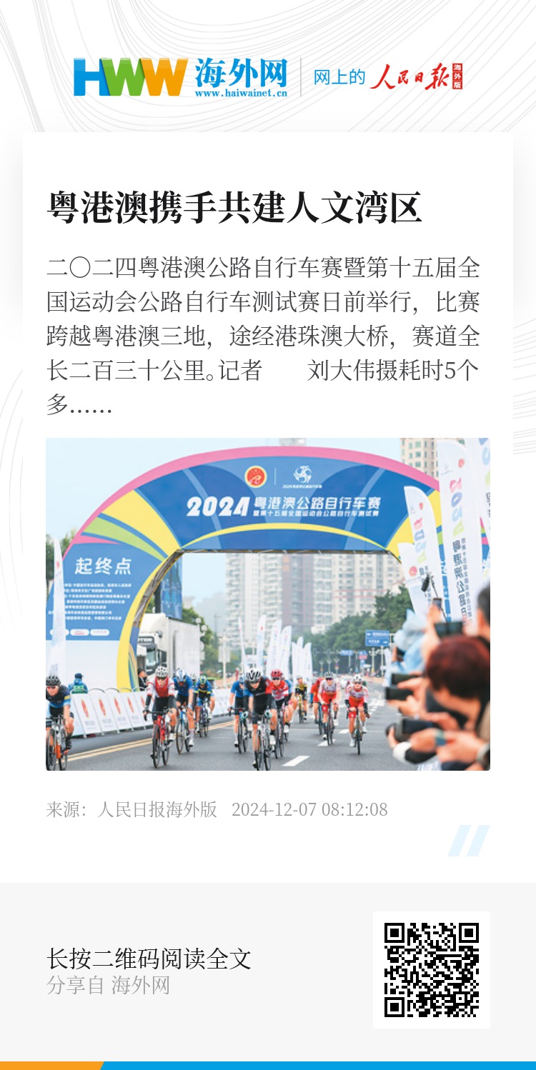 耗时5个多小时、横跨港珠澳大桥、骑行230公里……近日,2024粤港澳公路自行车赛暨第十五届全国运动会公路自行车测试赛举办,来自全国各地的67名运动员齐聚大湾区,完成了一场跨越粤港澳三地的骑行赛。