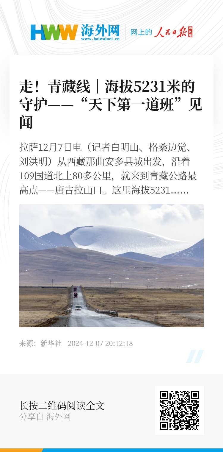 新华社拉萨12月7日电(记者白明山、格桑边觉、刘洪明)从西藏那曲安多县城出发,沿着109国道北上80多公里,就来到青藏公路最高点——唐古拉山口。