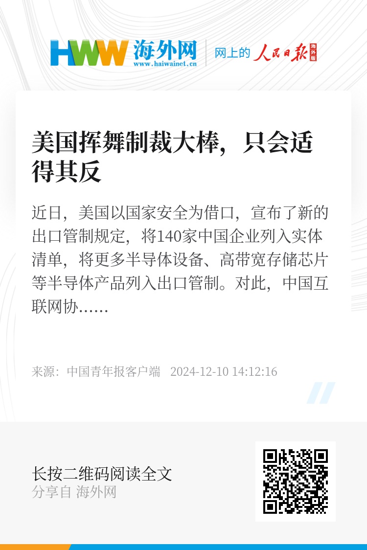 近日,美国以国家安全为借口,宣布了新的出口管制规定,将140家中国企业列入实体清单,将更多半导体设备、高带宽存储芯片等半导体产品列入出口管制。对此,中国互联网协会、中国汽车工业协会、中国半导体行业协会、中国通信企业协会迅速作出反应,次日均发表声明,呼吁国内企业审慎选择采购美国芯片。