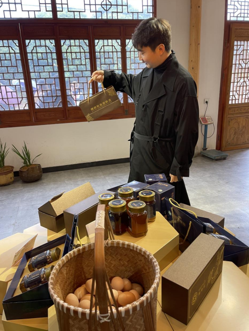 十多年前,那时的樨鄉記原本只是个偏远的家庭农场。当时桂花树的市场行情不错,家庭农场主人也就是邱黎辉的父亲邱金福,种下了这片百亩桂花林销售苗木。“后来苗木的价格越来越低,我爸爸就转型做林下经济,在树下散养些鸡、鸭、鹅、羊。我想让更多人知道我们遂昌的高品质‘山货’,大学毕业后,我就回家帮父母一起经营养殖场。”邱黎辉告诉记者。