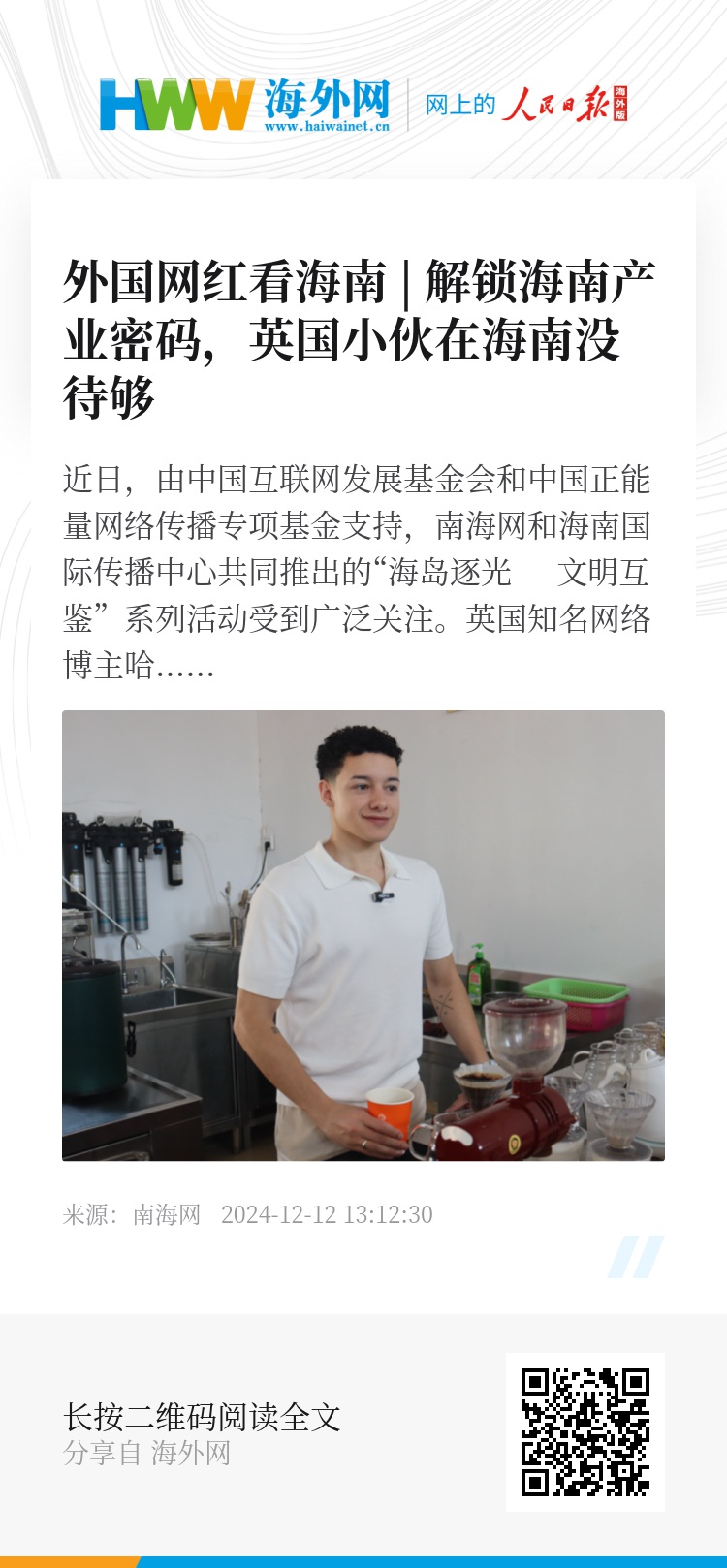 这次海南之行不仅让哈维深入了解了海南的特色产业,也让更多人通过他的镜头认识了中国海南——这座充满潜力与魅力的岛屿。