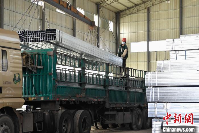 图为物流园区,工人装卸钢材。贡嘎来松 摄