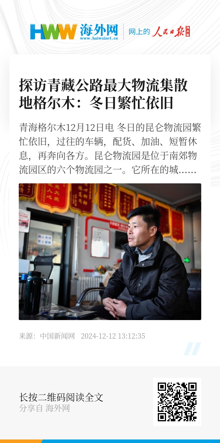 中新网青海格尔木12月12日电 冬日的昆仑物流园繁忙依旧,过往的车辆,配货、加油、短暂休息,再奔向各方。