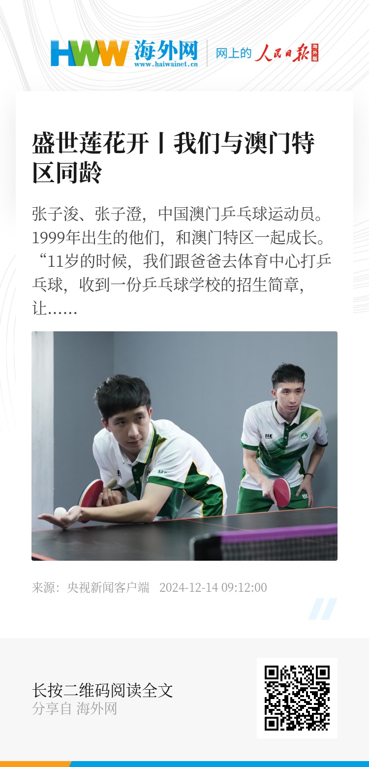 从澳门理工大学体育教育专业毕业后,“乒乓兄弟”都已投身体育教育事业。2025年,第十五届全运会将在粤港澳三地举办,澳门将承办乒乓球比赛。“我们很希望代表澳门去参赛,家人和朋友能来现场为我们加油,也期待我们在主场的发挥。”
