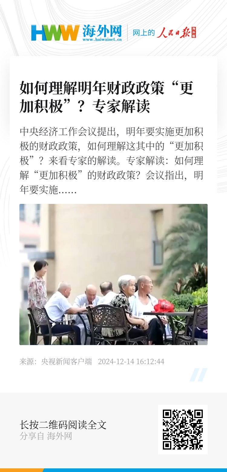 中央经济工作会议提出,明年要实施更加积极的财政政策,如何理解这其中的“更加积极”?来看专家的解读。