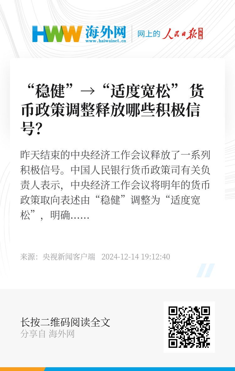 中国人民银行货币政策司司长 邹澜:中央定调货币政策取向为“适度宽松”,具有极强的信号意义,强化了政策的延续性和有效性,有利于增加投资者信心,提升消费意愿,进一步激发经济主体的积极性和能动性,推动实体经济良性循环。