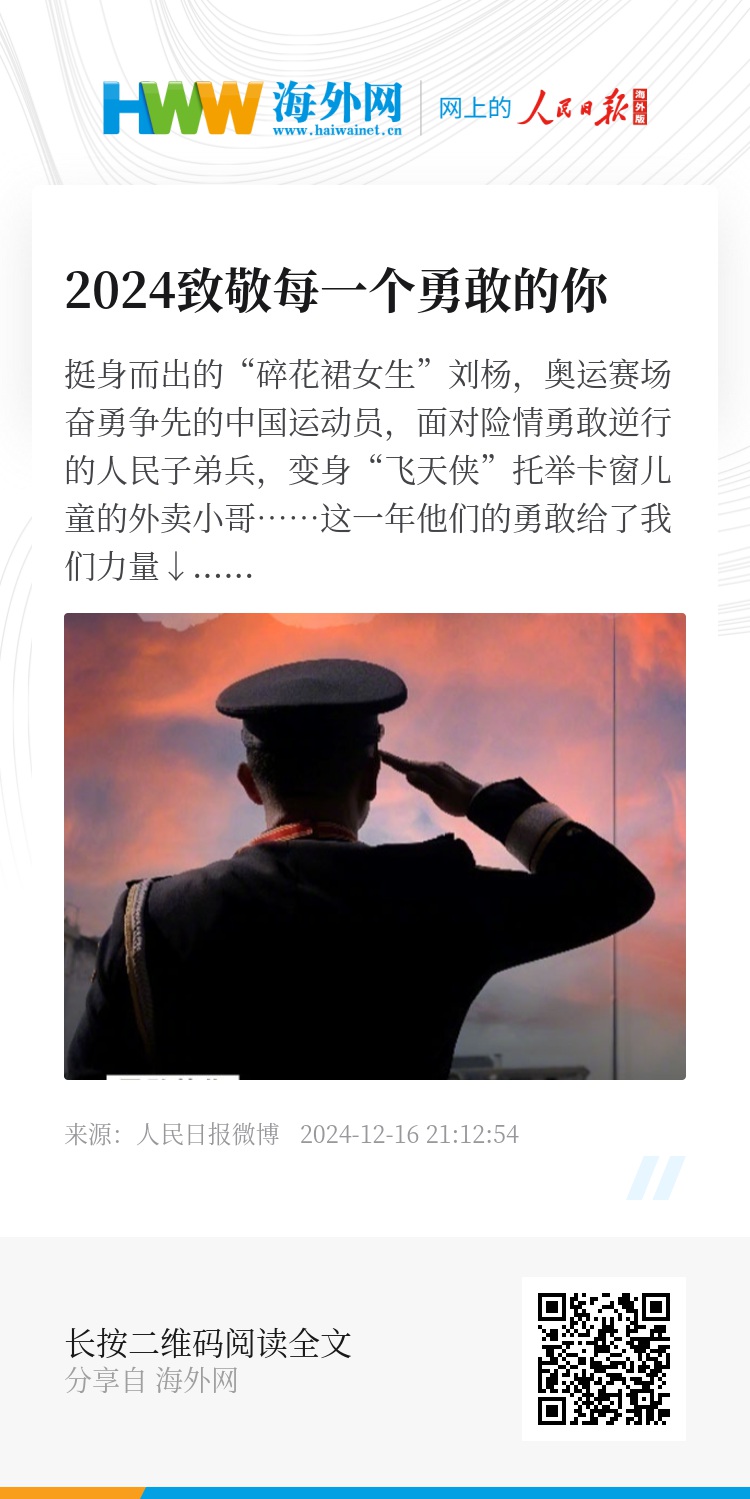 挺身而出的“碎花裙女生”刘杨,奥运赛场奋勇争先的中国运动员,面对险情勇敢逆行的人民子弟兵,变身“飞天侠”托举卡窗儿童的外卖小哥……这一年他们的勇敢给了我们力量↓↓致敬!带着勇气,继续前行。