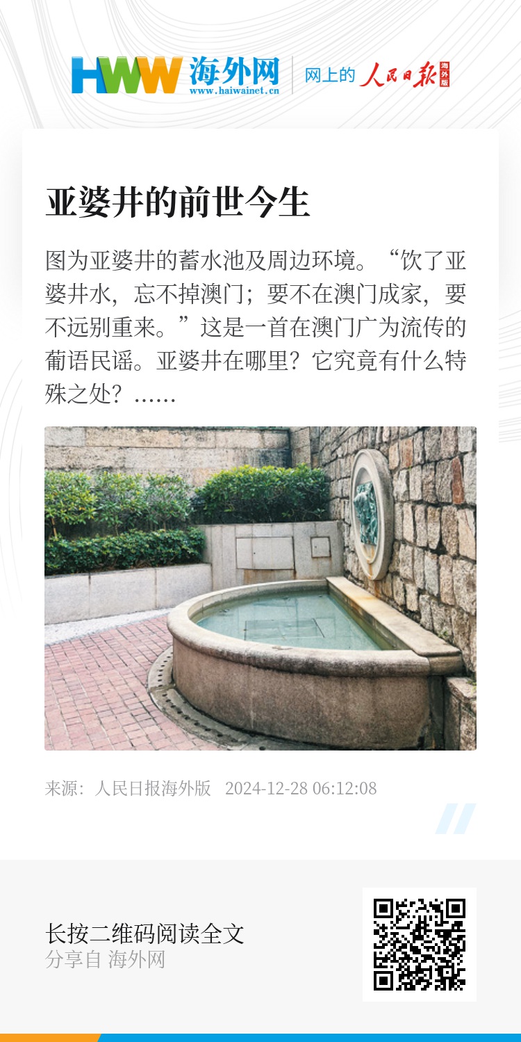 “饮了亚婆井水,忘不掉澳门;要不在澳门成家,要不远别重来。”这是一首在澳门广为流传的葡语民谣。亚婆井在哪里?它究竟有什么特殊之处?
