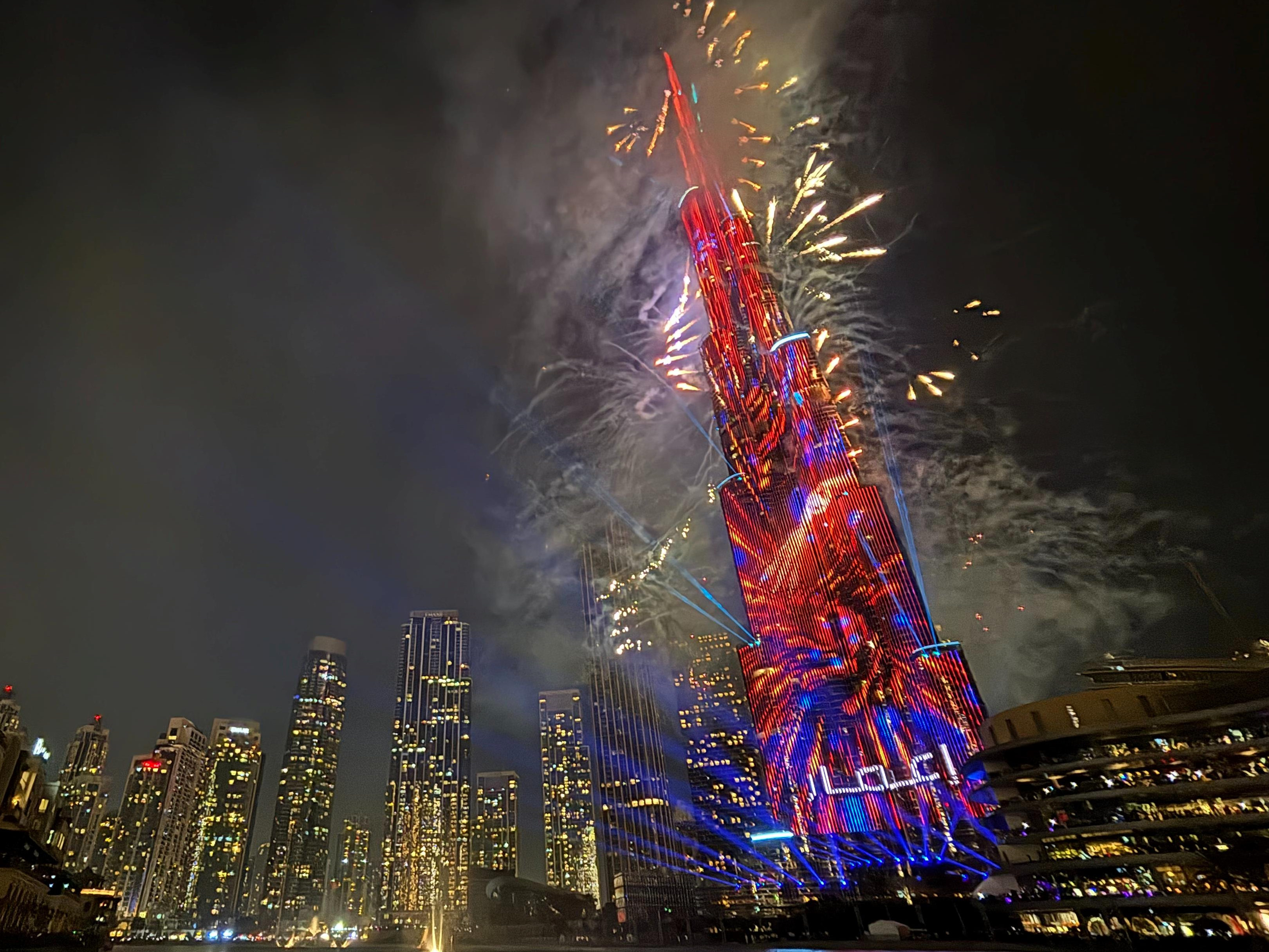 随着2025年零点的钟声在迪拜敲响,演出正式拉开帷幕,超过15600个烟火元素和超过200束激光为这座城市增添了新年的色彩与活力。而在零点钟声响起之后,迪拜全城共计36处烟花燃放点也共同燃放起新年烟花,点亮迪拜上空。