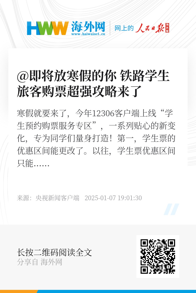寒假就要来了,今年12306客户端上线“学生预约购票服务专区”,一系列贴心的新变化,专为同学们量身打造!