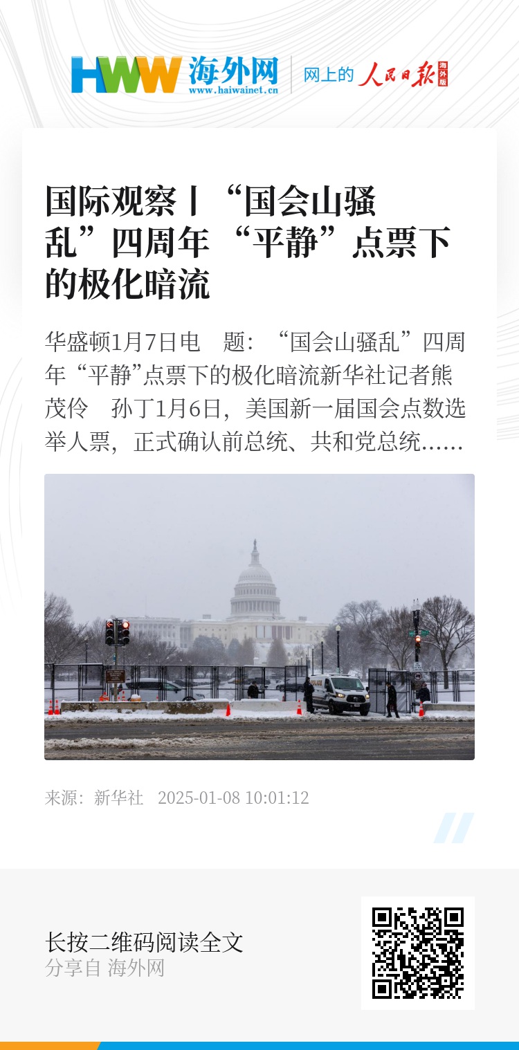 新华社华盛顿1月7日电 题:“国会山骚乱”四周年 “平静”点票下的极化暗流