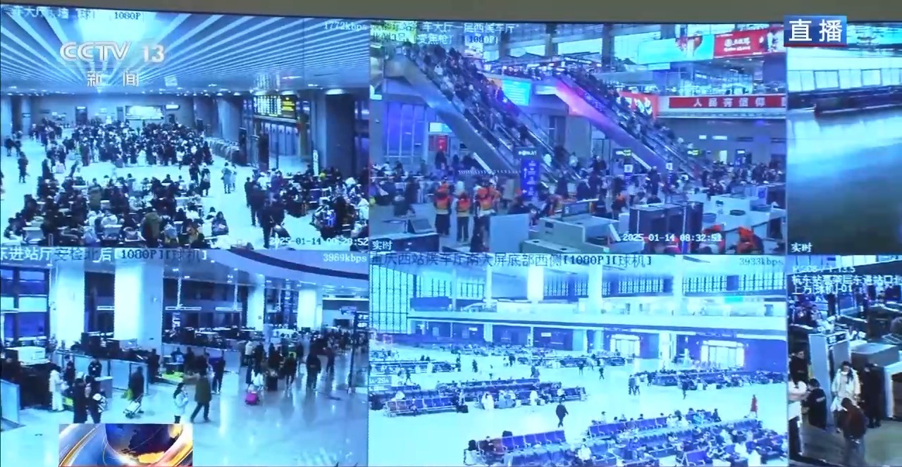 总台央视记者 陈俏:国铁集团最新数据显示,春运首日全国铁路预计发送旅客1030万人次,全国铁路计划开行旅客列车11149列,安排加开旅客列车475列。