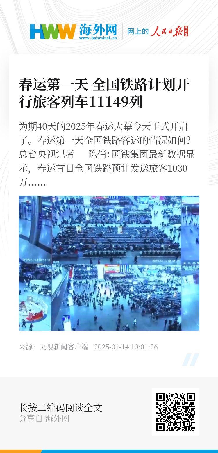为期40天的2025年春运大幕今天正式开启了。春运第一天全国铁路客运的情况如何?