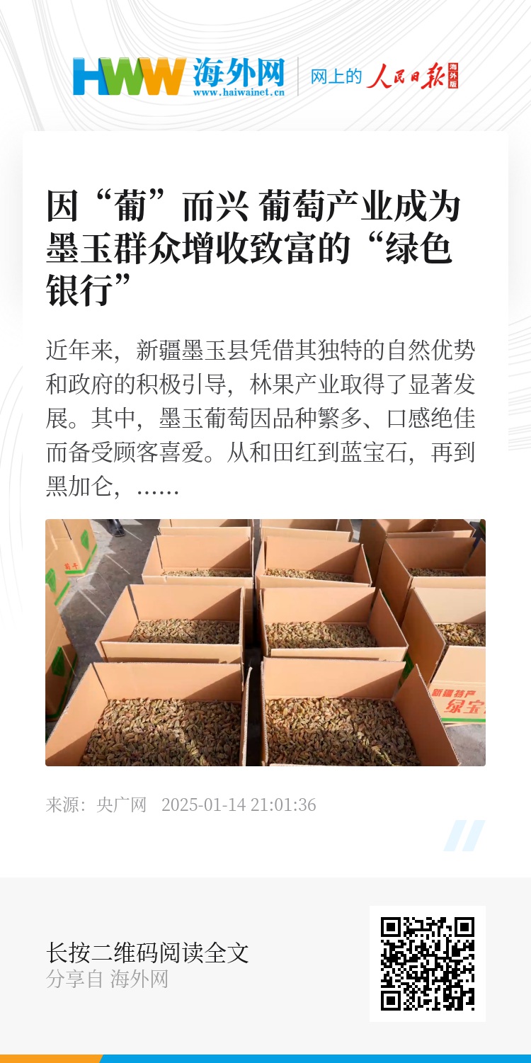 葡萄产业的蓬勃发展,不仅为墨玉县带来了可观的经济效益,更为当地农民提供了广阔的增收渠道,助力他们走上了富裕之路。(吾哈力妮萨·努尔麦麦提 艾比拜·亚森)