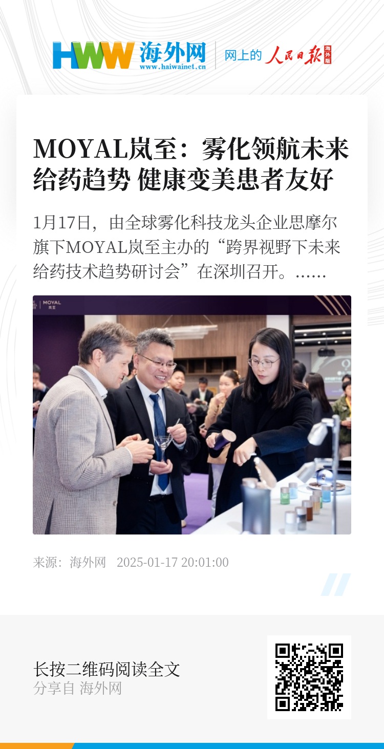 1月17日,由全球雾化科技龙头企业思摩尔旗下MOYAL岚至主办的“跨界视野下未来给药技术趋势研讨会”在深圳召开。