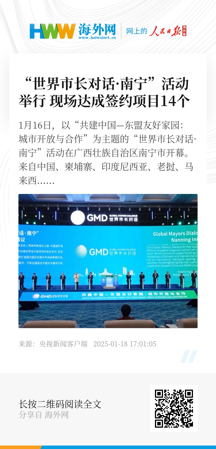 在“世界市长对话·南宁”主活动现场,《南宁倡议》发布。该倡议旨在站在新的历史起点,推动各方深化务实合作,加快构建更为紧密的中国—东盟命运共同体,为世界和平发展作出更大贡献。