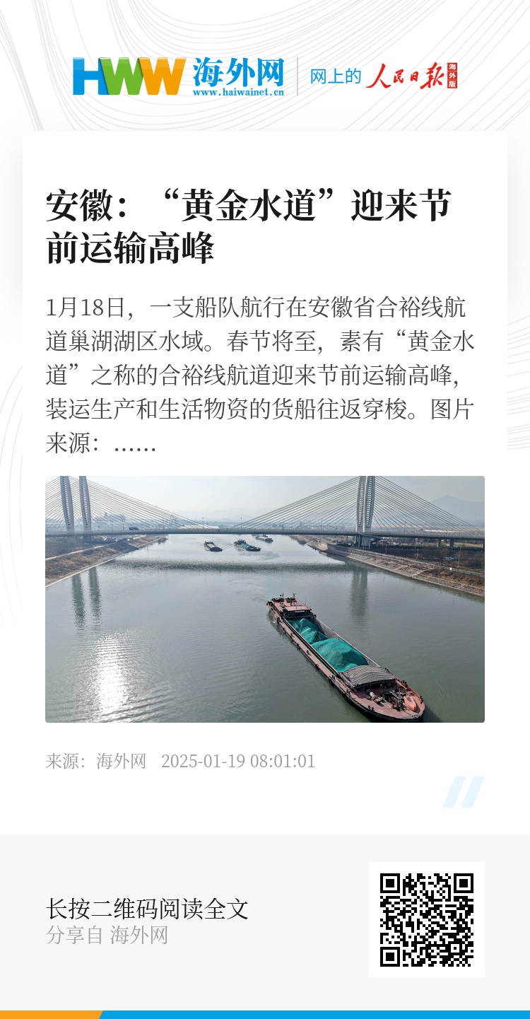 32830796,.安徽:“黄金水道”迎来节前运输高峰,.2025-01-19 08:25:01,.204555,.陈菲扬、刘凌