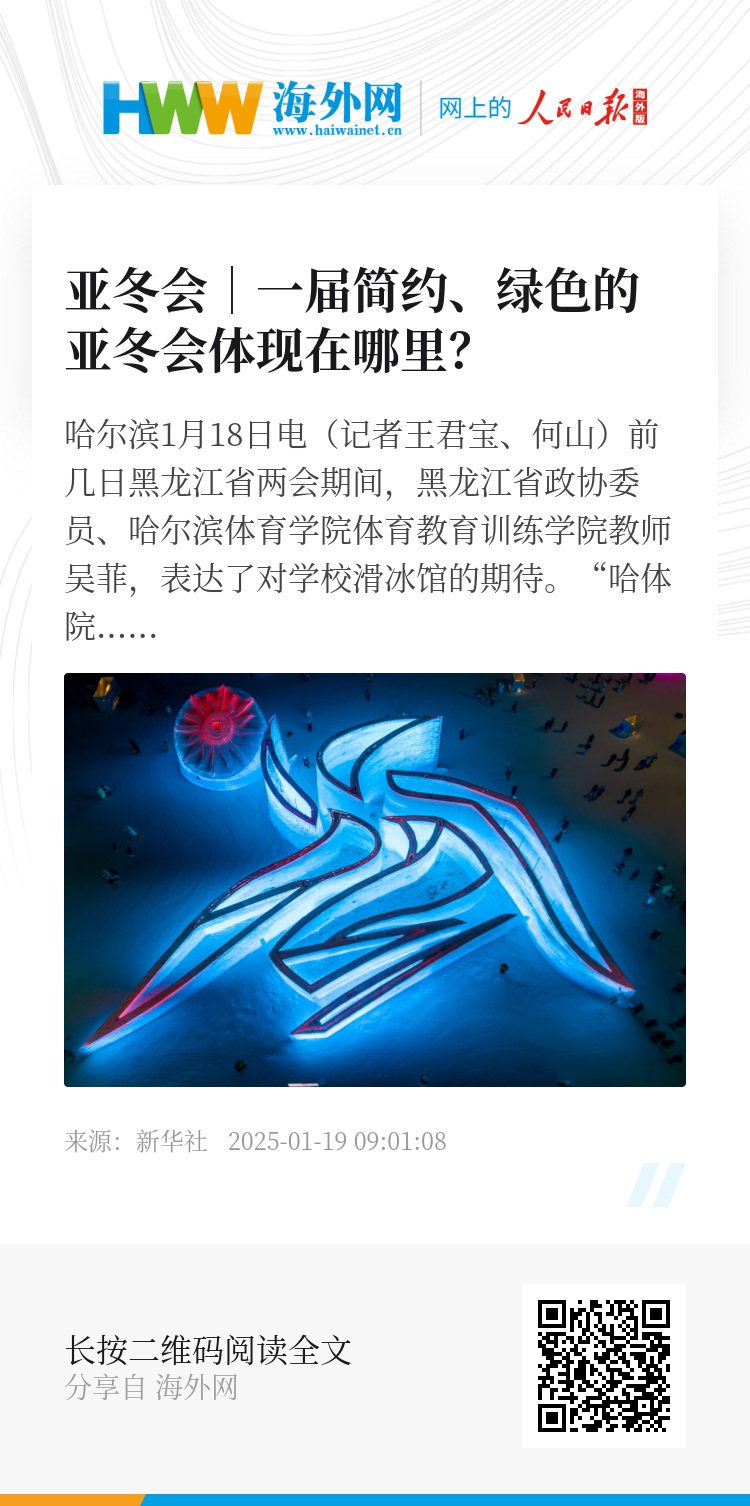 此外,本次亚冬会将实现历史上首次比赛场馆及配套设施改造建设、测试赛及正赛期间100%绿电供应。亚冬会执委会运动员服务部环保专班负责人刘庆辉介绍,风能、太阳能等绿色能源在赛时将源源不断供应各个场馆,保障场馆的用电需求。