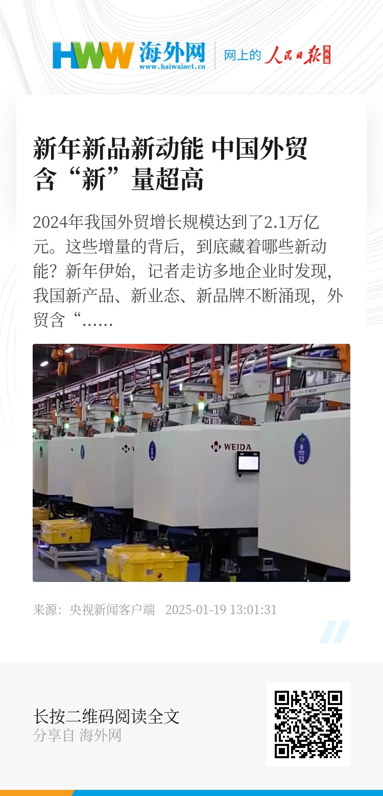 2024年我国外贸增长规模达到了2.1万亿元。这些增量的背后,到底藏着哪些新动能?新年伊始,记者走访多地企业时发现,我国新产品、新业态、新品牌不断涌现,外贸含“新”量不断上升。