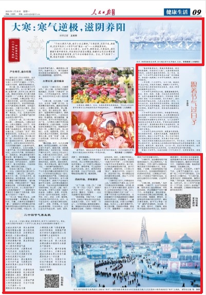 “大寒大寒,防风御寒。”张宗学提醒,大寒时节,冷空气仍较频繁,容易诱发心脑血管疾病、呼吸系统疾病,养生需藏神于内而不露于外。体质虚寒者、慢性病患者、年老体弱者尤需注意防寒保暖,重视对头颈部、胸腹部、腰背后、足底等容易受寒的部位的呵护,避免风寒的侵袭。家中可以常备一些“辛”通阳气的调味料,如生姜、大葱、香菜、紫苏叶、花椒等,都是味辛性温的药食两用之品。初感风寒感冒时,及时将这些辛温解表、宣肺散寒的食材煮水或熬粥食用,有助于改善症状。睡前也可用生姜、艾叶、花椒等煮水泡脚,能起到驱寒散湿、活血通络之效。