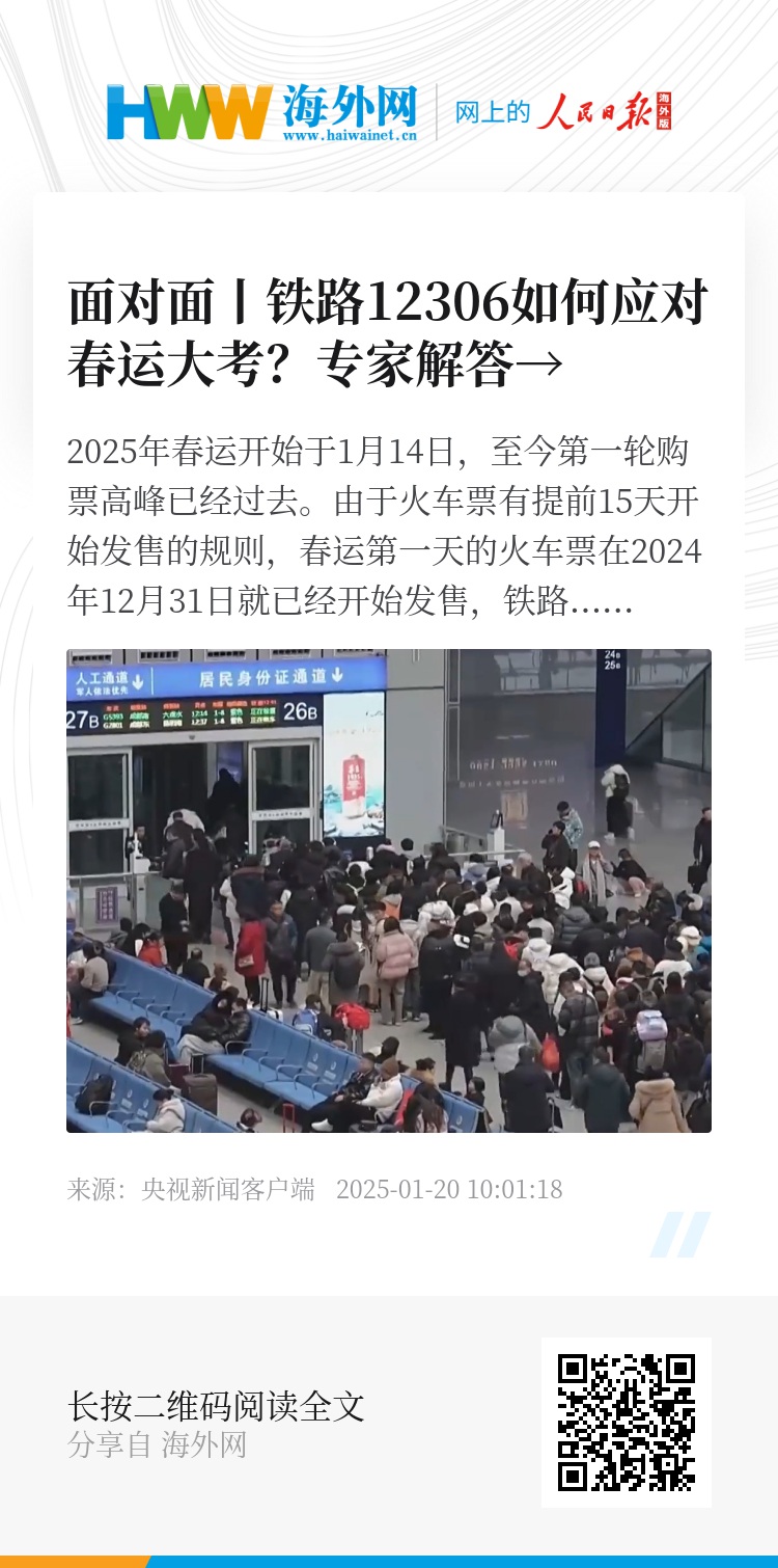 2025年春运开始于1月14日,至今第一轮购票高峰已经过去。由于火车票有提前15天开始发售的规则,春运第一天的火车票在2024年12月31日就已经开始发售,铁路12306的监控中心也从那时起就进入了春运大考阶段。