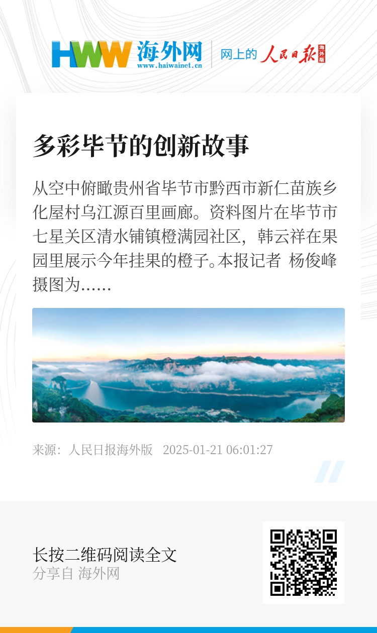 春节前夕,本报记者来到毕节市下辖的七星关区、毕节高新区、威宁彝族回族苗族自治县、纳雍县、黔西市,实地采访多彩毕节的创新故事。