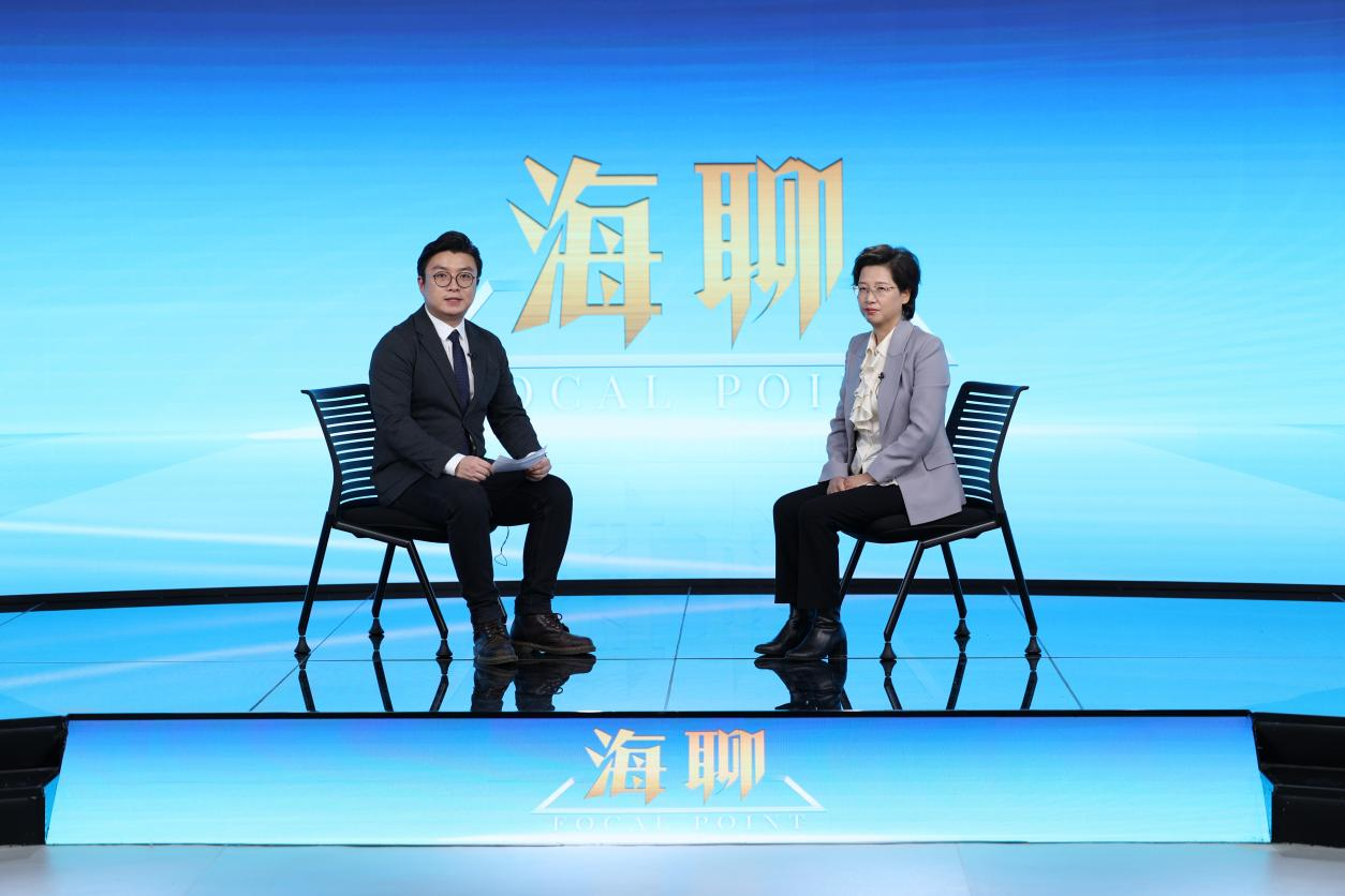 新春茶话会结束后,殷敏接受人民日报海外网《海聊》栏目专访。