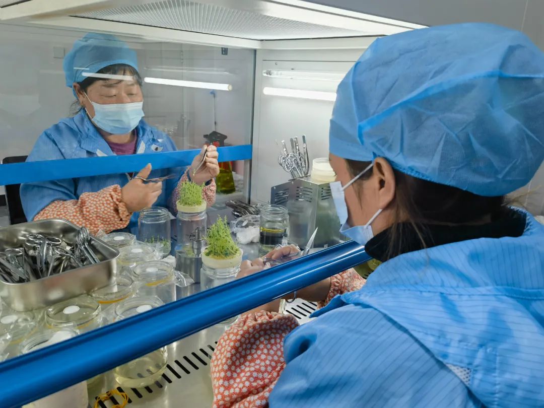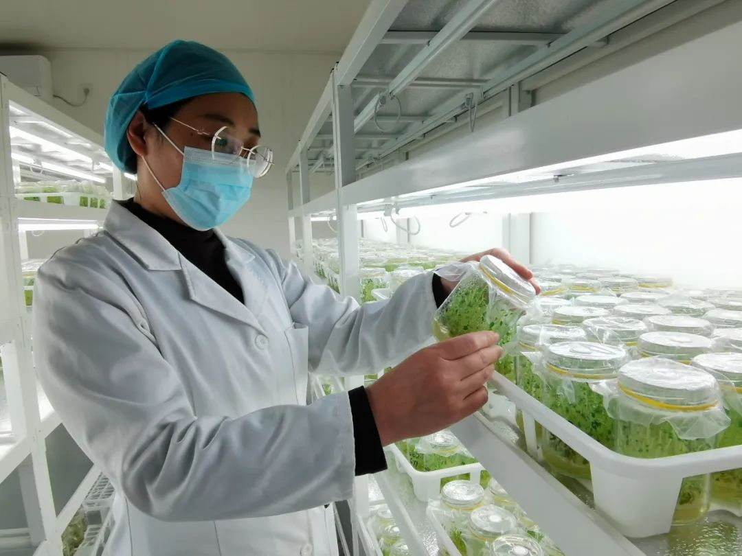 科研技术人员在观察马铃薯种苗生长情况。(图/宋海鑫)