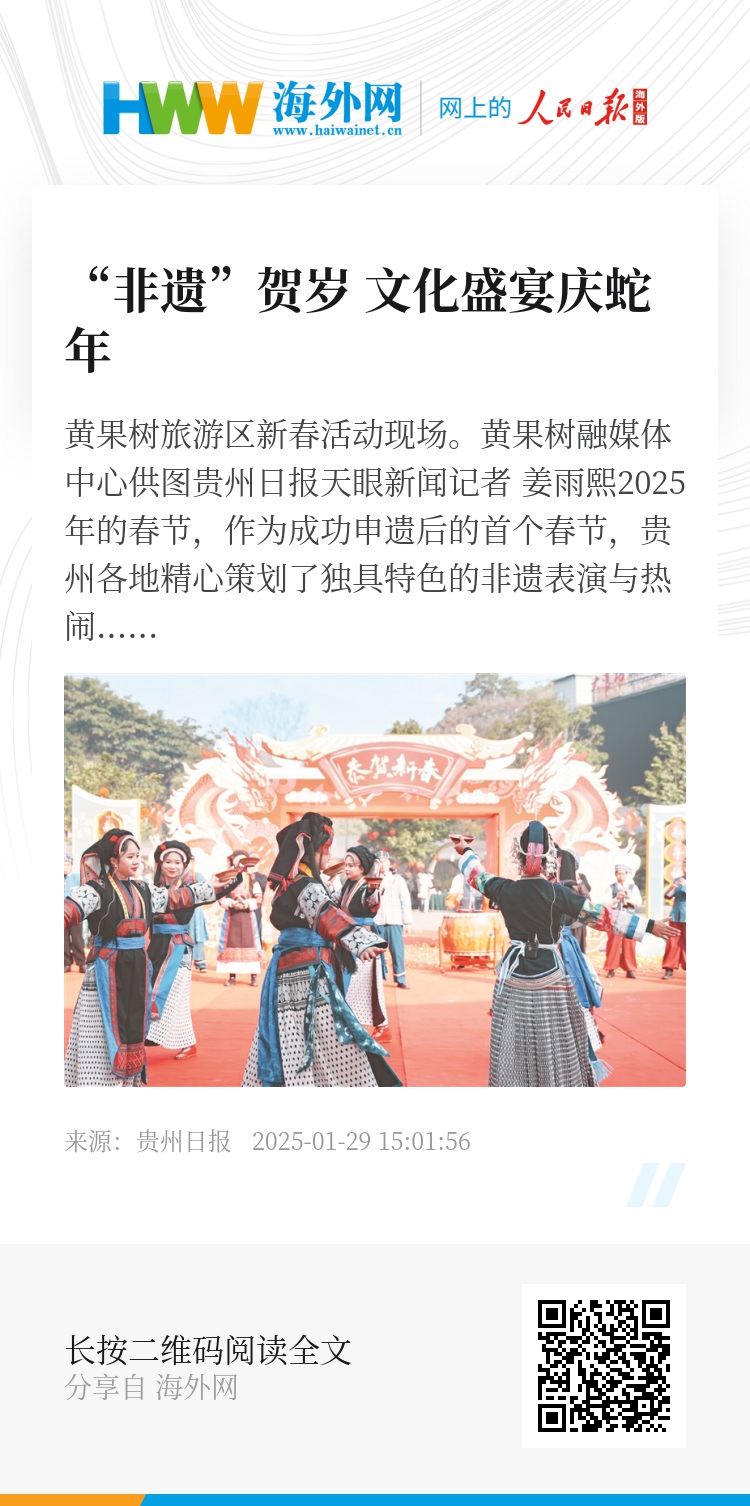 2025年的春节,作为成功申遗后的首个春节,贵州各地精心策划了独具特色的非遗表演与热闹喜庆的民俗活动,线上、线下轮番上演,让传统佳节更具文化韵味。