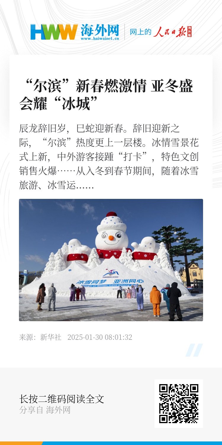 作为亚冬会东道主,“尔滨”的冰雪不仅是一场视觉盛宴,更如同一扇“世界之窗”,更多人在这里爱上开放、友好的中国,了解亚洲多元、美好的文明。