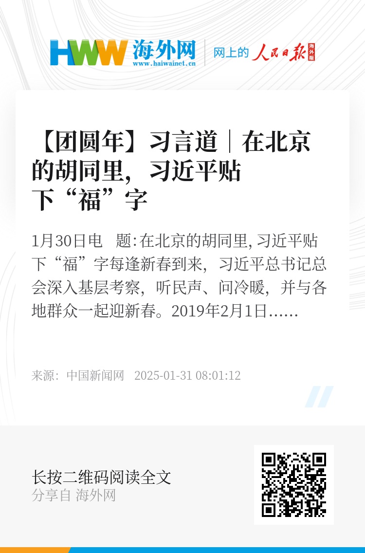 中新网1月30日电 题:在北京的胡同里,习近平贴下“福”字