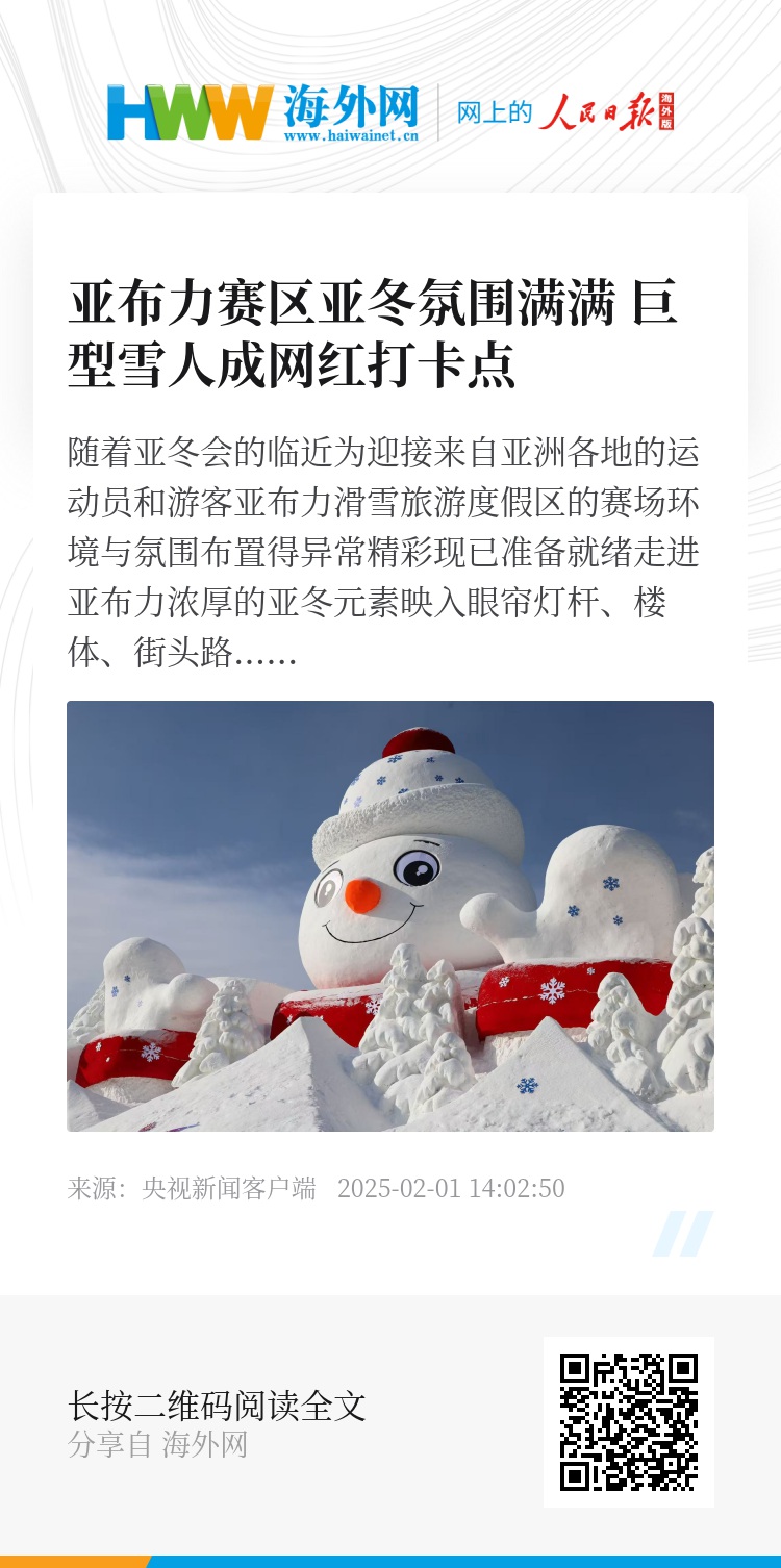 除了《惊喜的大雪人》外,亚布力滑雪旅游度假区还精心打造了其他8座雪雕作品,共同构成了度假区的冰雪景观。这些雪雕作品既有经典的大雪人形象。也有神鹿、熊猫等蕴含亚布力景区特色的动物形象,还有与亚冬会主题相关的吉祥物、大奖杯等,各座雪雕风格各异,充分展示了冰雪艺术的魅力
