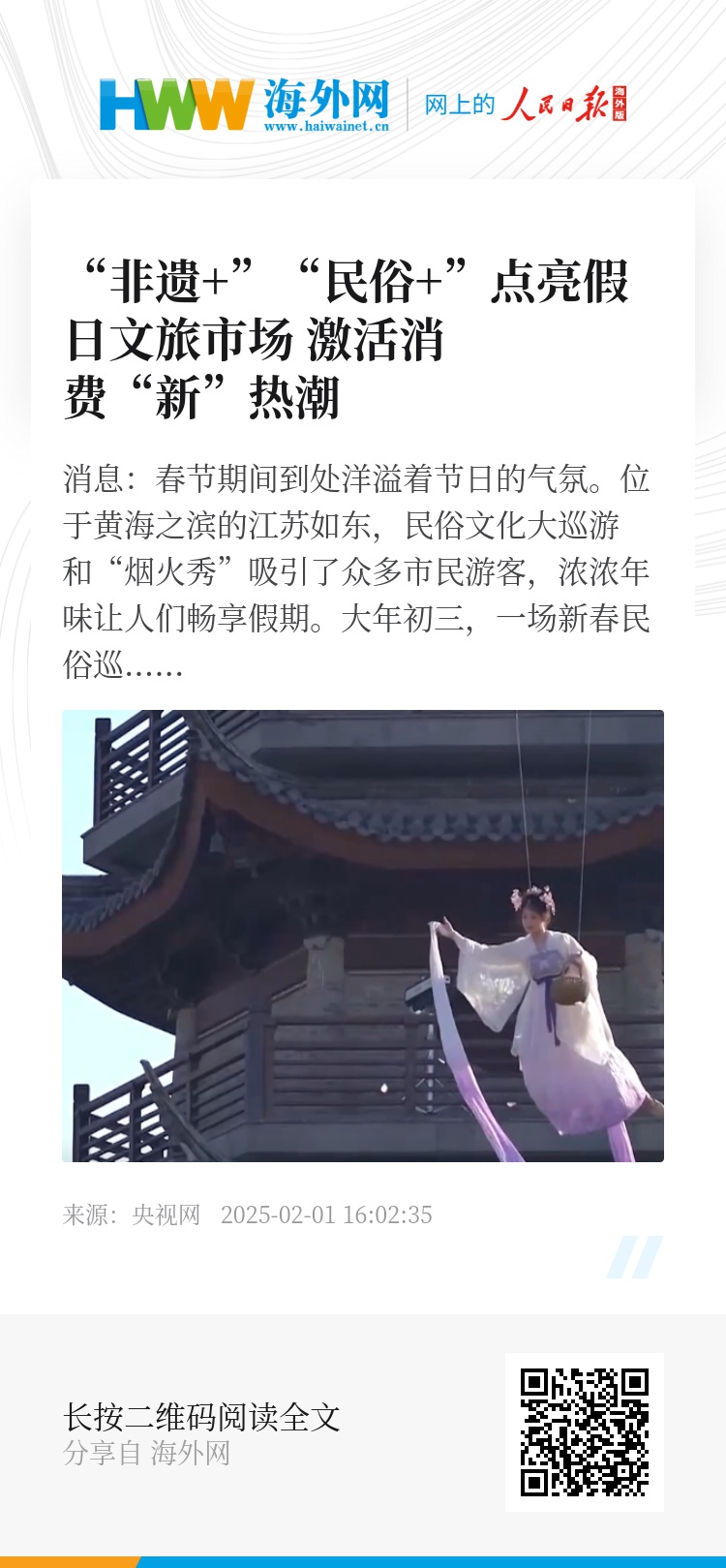 央视网消息:春节期间到处洋溢着节日的气氛。位于黄海之滨的江苏如东,民俗文化大巡游和“烟火秀”吸引了众多市民游客,浓浓年味让人们畅享假期。
