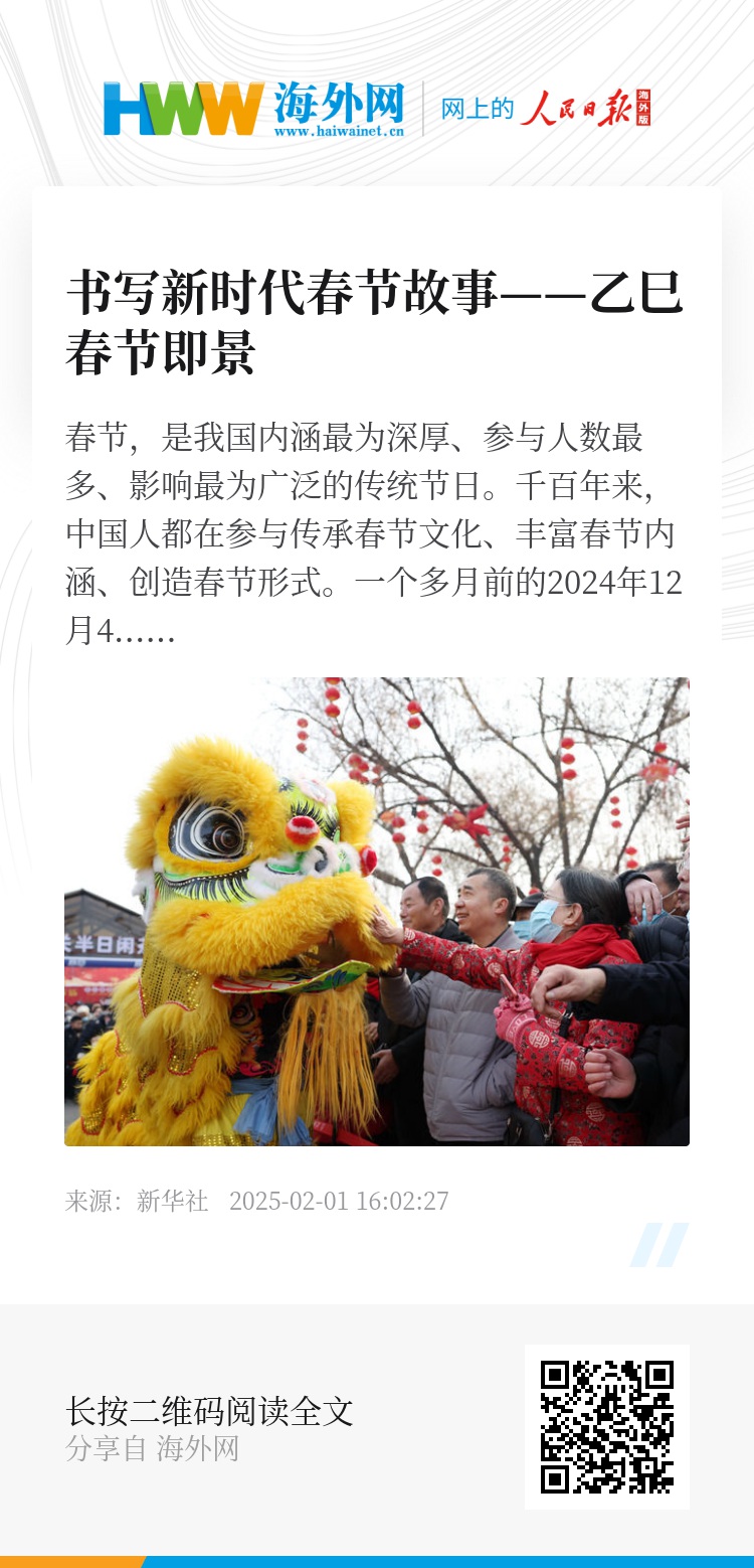 乙巳春节,人们在喜庆和祝福中回望历史文化源头,共享当下温暖情感,憧憬未来美好生活,一幅新时代春节故事的瑰丽长卷激荡人心。