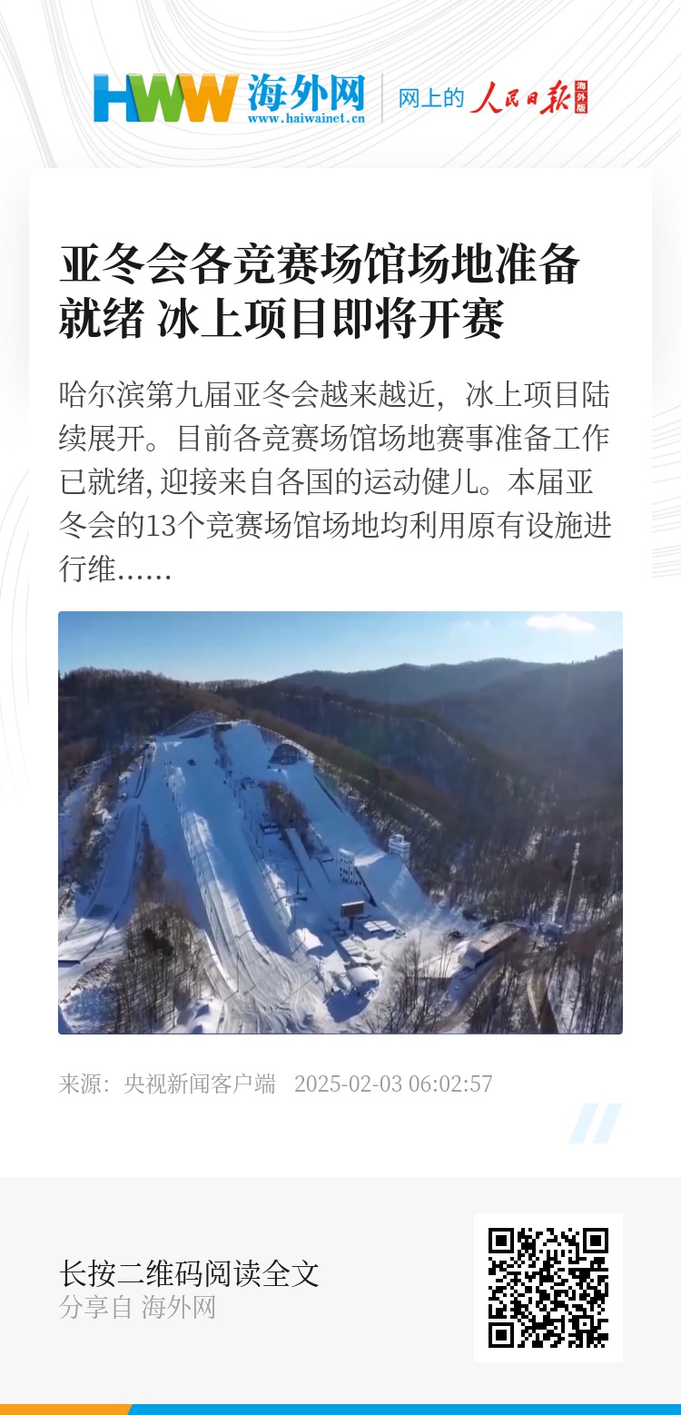 哈尔滨第九届亚冬会越来越近,冰上项目陆续展开。目前各竞赛场馆场地赛事准备工作已就绪,迎接来自各国的运动健儿。