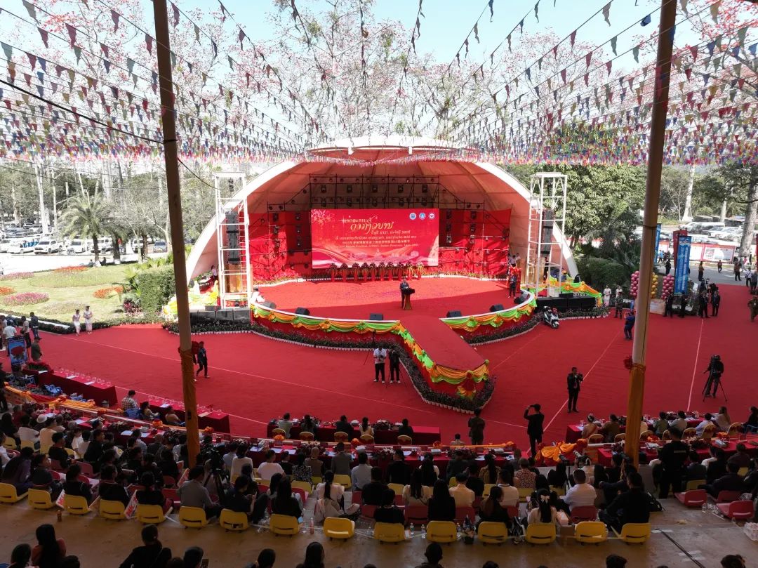 开幕式上,灯光璀璨,气氛热烈。博胶省各县和特区文工团的舞者身着绚丽传统服饰,步伐灵动,共同献上多支独具老挝民族特色的舞蹈。老挝知名歌手一展歌喉,用极具感染力的歌声瞬间点燃现场。每一个节目都生动展现出老挝传统文化的独特魅力,赢得台下阵阵掌声。