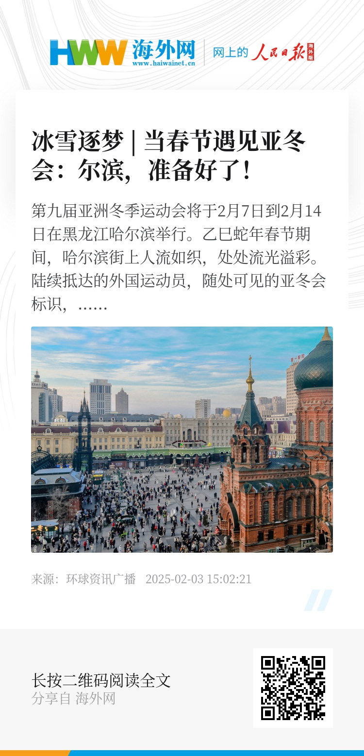 第九届亚洲冬季运动会将于2月7日到2月14日在黑龙江哈尔滨举行。