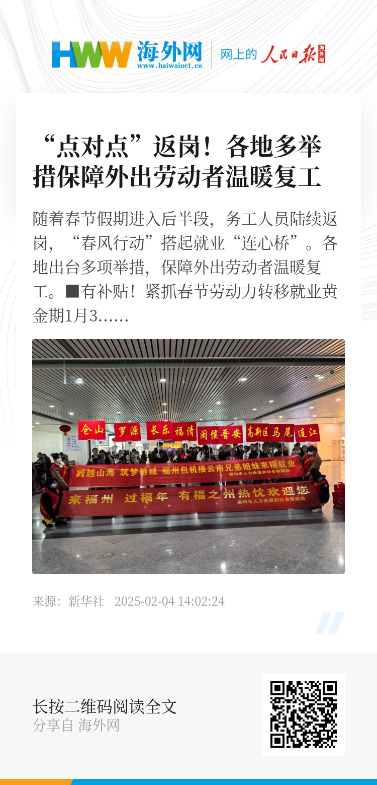 随着春节假期进入后半段,务工人员陆续返岗,“春风行动”搭起就业“连心桥”。各地出台多项举措,保障外出劳动者温暖复工。