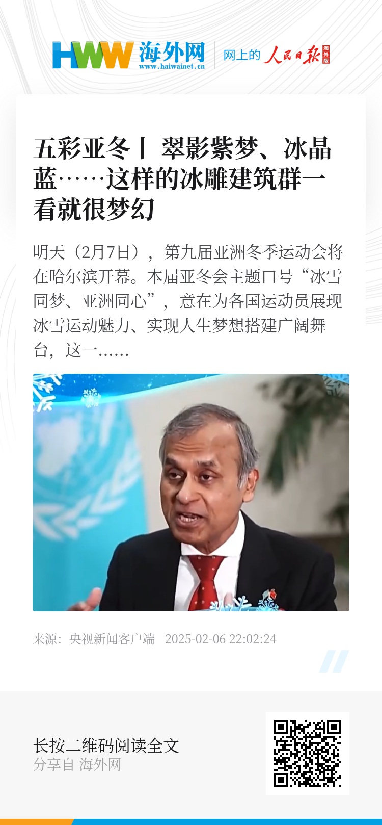 巴基斯坦驻华大使 哈什米:这是一项重大活动,亚洲冬季运动会是一项国际赛事。我认为,通过举办亚洲冬季运动会,其背后所传递的精神是包容性,将大家凝聚在一起,朝着共同的未来前进。我认为这是体育领域的又一个重要里程碑。