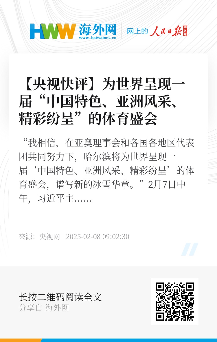 “我相信,在亚奥理事会和各国各地区代表团共同努力下,哈尔滨将为世界呈现一届‘中国特色、亚洲风采、精彩纷呈’的体育盛会,谱写新的冰雪华章。”2月7日中午,习近平主席在哈尔滨第九届亚洲冬季运动会开幕式欢迎宴会上发表致辞,欢迎来华出席亚冬会开幕式的国际贵宾。