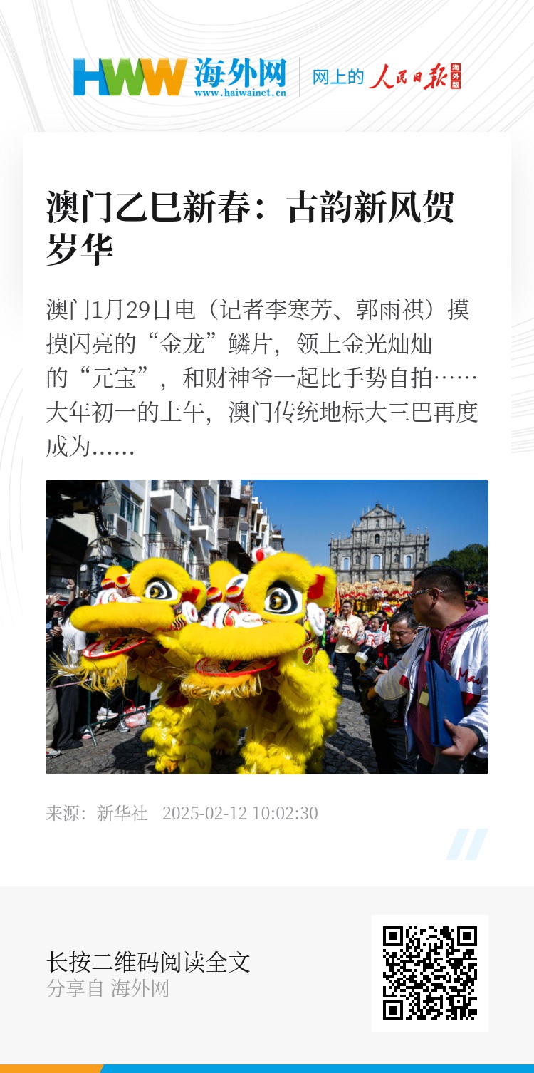 当爆竹声声入耳,当烟花照亮镜海,属于濠江的春之圆舞曲,正谱写出中西文明交融的时代新韵。